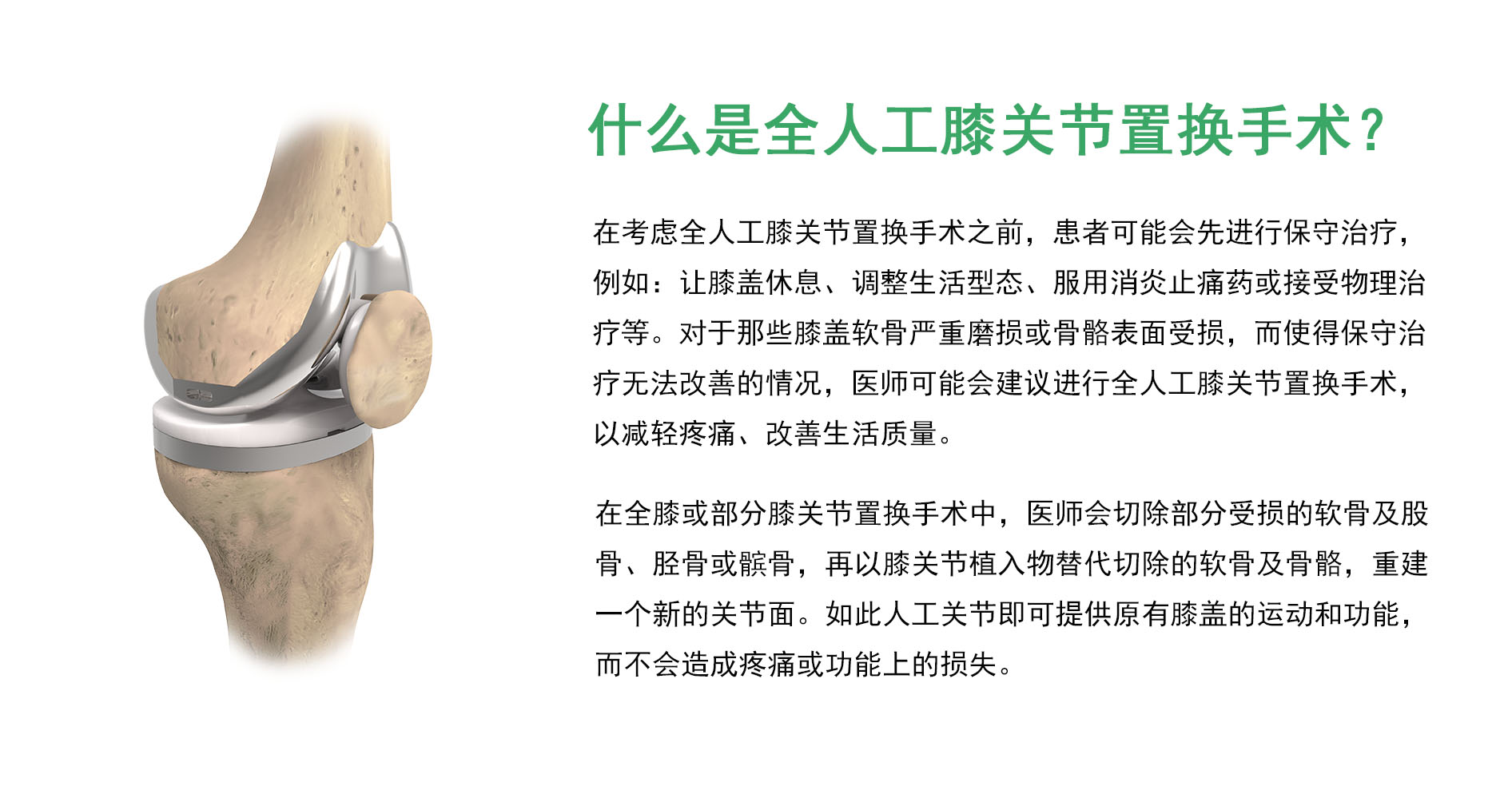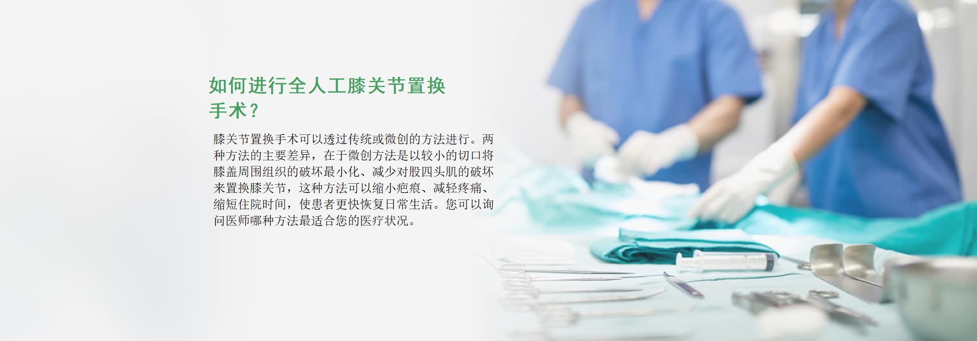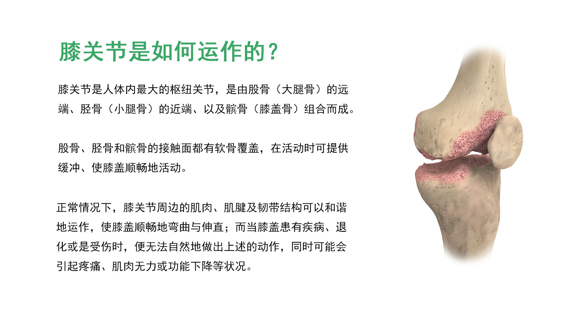 一般而言,进行全人工膝关节置换手术时,医师会从切口拨开股四头肌,将膝关节的受损区域暴露出来,接着医师会将髌骨移开,切除受损的骨骼和软骨,再以植入物替代切除的区域。